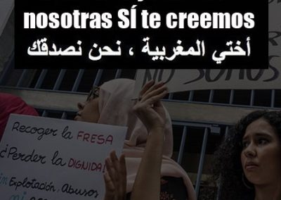 España, estado que enaltece su pacto por la “igualdad” y contra la violencia de género, demuestra nuevamente cómo, desde su racismo estructural, unas vidas valen más que otras; las mujeres, migrantes, empobrecidas y dedicadas a un sector productivo infravalorado como el primario, quedan relegadas al último plano. La mayor dificultad en la lucha contra el racismo, la violencia sexual y los tratos inhumanos hacia las compañeras trabajadoras jornaleras marroquíes de los frutos rojos del sur de España, es demostrar que están sujetas de forma constante a estos patrones de violencia.